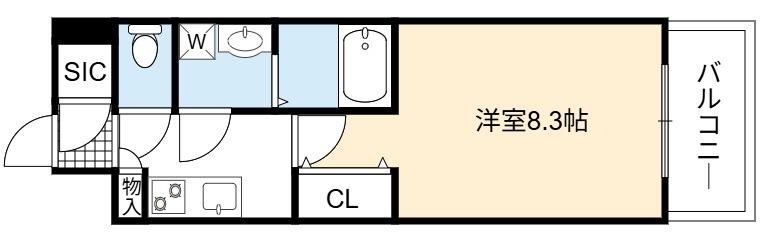 1K | 洋室 8.3畳 | 26.29㎡ |