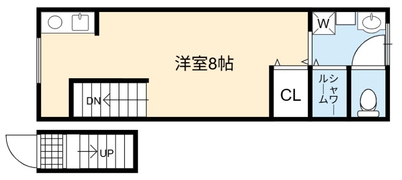 | ワンルーム | 洋室 8畳 | 20㎡ |