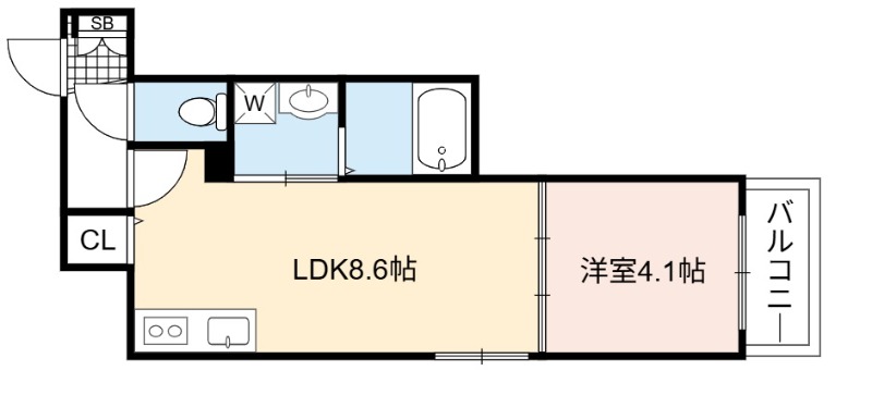 | 間取り詳細 | LDK 8.6畳 、 洋室 4.1畳 |