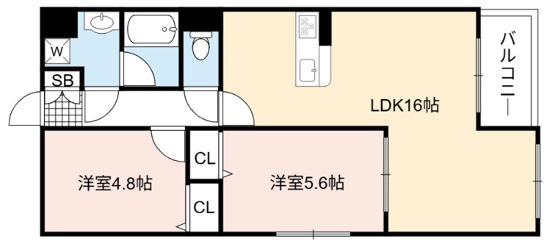 | 間取り詳細 | LDK 16畳 、 洋室 5.6畳 、 洋室 4.8畳 |