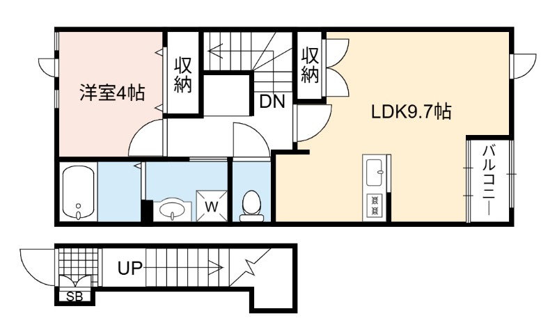 | 間取り詳細 | LDK 9.7畳 、 洋室 4畳 |