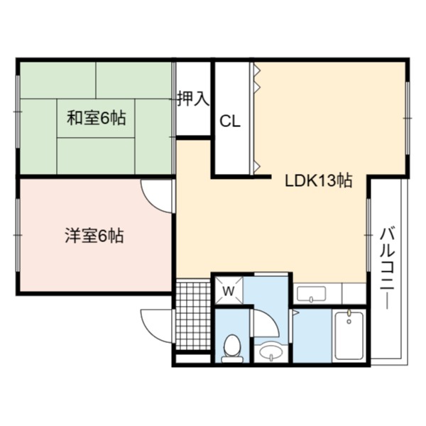 | 間取り詳細 | LDK 13畳 、 和室 6畳 、 洋室 6畳 |